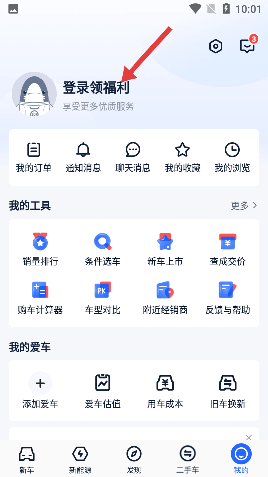 2、在个人页面点击【登录领福利】,进入登录界面。