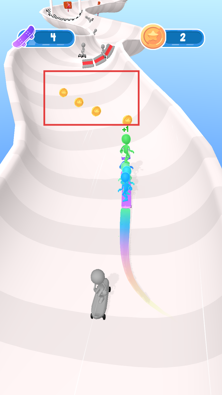 1、团队收集机制:通过收集滑板队友扩大队伍规模,队伍越长最终跳跃时获得的奖励越丰厚,增加收集乐趣。