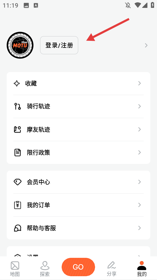 2、在个人页面点击【登录/注册】,进入登录界面。