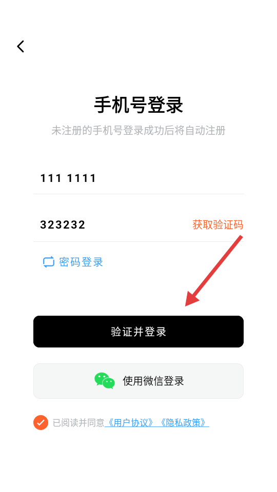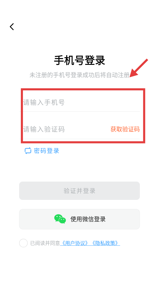 3、输入手机号码和验证码。