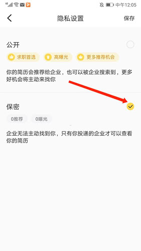 5、勾选【保密】选项,完成公司屏蔽设置。