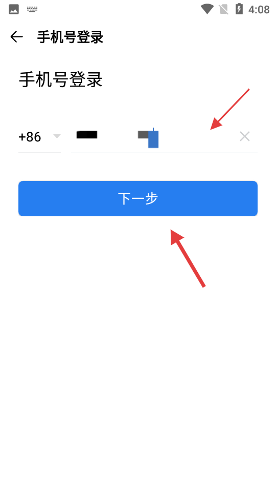 2、在手机号登录页输入手机号码,点击【下一步】。