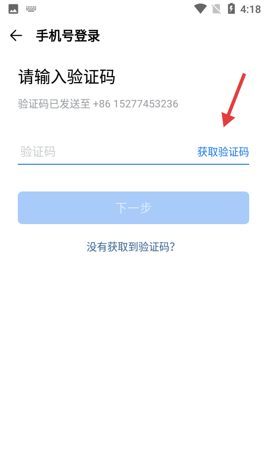 3、进入验证码输入页,点击【获取验证码】,等待短信验证码。