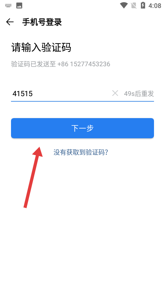 4、输入收到的验证码,点击【下一步】,完成登录。