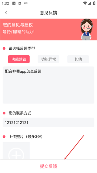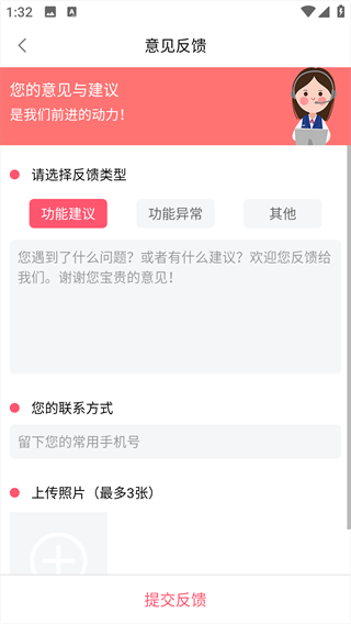 3、填写意见内容、联系方式,还可按需上传相关照片。