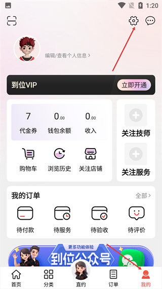 1、进入“我的”页面,点击右上角的设置图标。