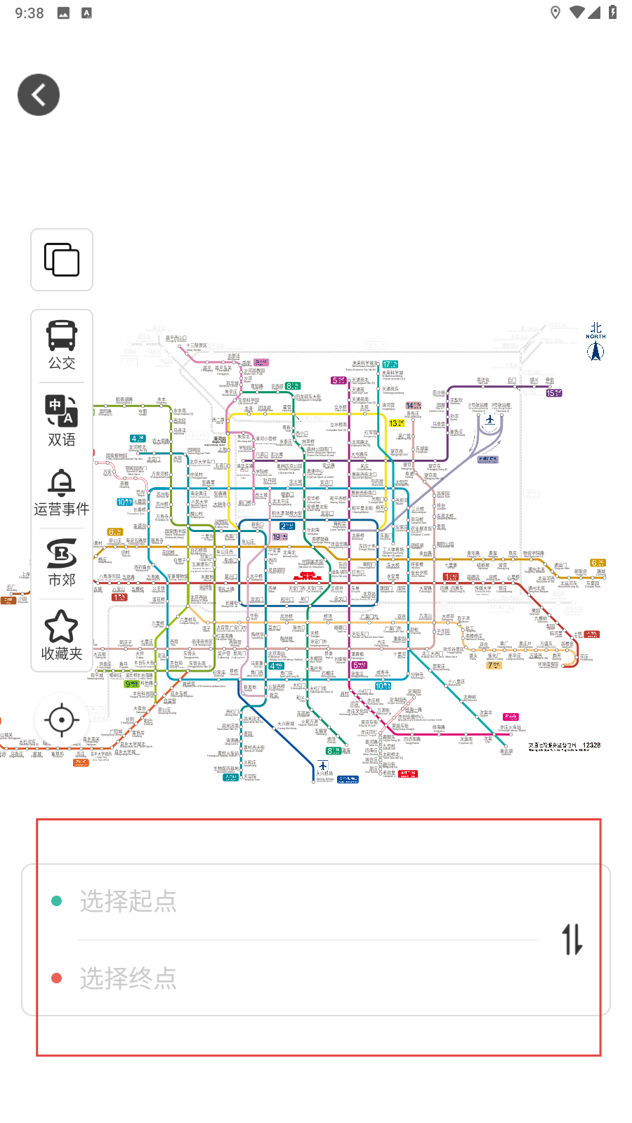 3、进入线路查询界面,在地图下方分别点击【选择起点】【选择终点】设置行程。