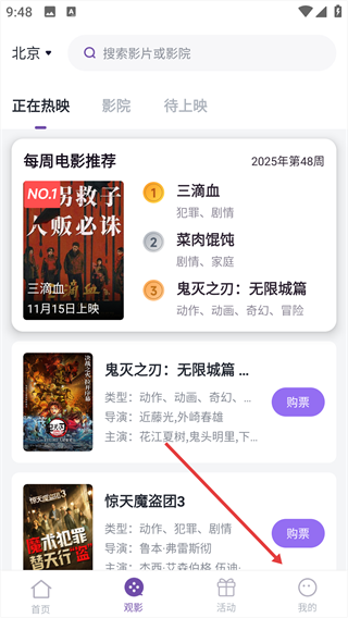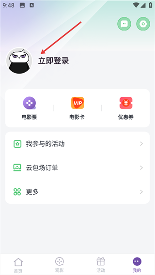 3、点击【活动】页面,点击活动区域可参与活动,获取观影机会,增添观影乐趣。
