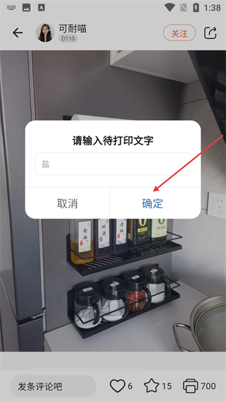 3、触发“请输入待打印文字”的弹窗,在输入框中填写需打印的内容,然后点击“确定”。