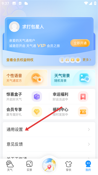 2、在天气通【我的】页面,找到并点击【通用设置】选项哦。