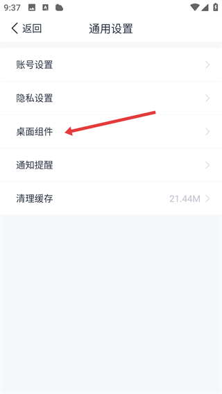 3、然后我们进入【通用设置】页面,选择【桌面组件】选项啦。