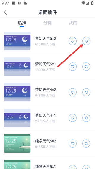 4、在【桌面插件】页面,选插件点击对应下载按钮添加到桌面吧。