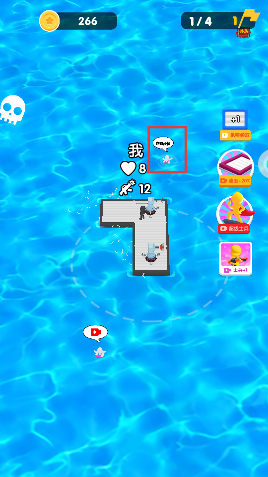 1、进入游戏,滑动屏幕操控角色移动收集红框内【木筏】增加区域。