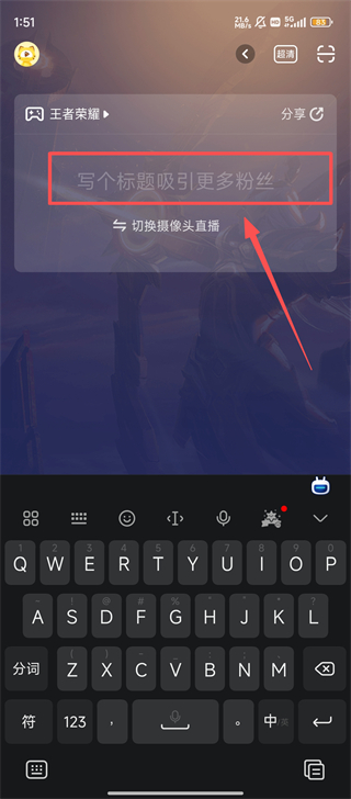 2、进入游戏直播准备页面后,在输入框中撰写有趣的标题,以此吸引更多观众围观哟。