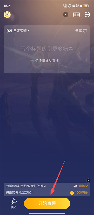 4、等标题和装饰都设置好后,点击页面下方的【开始直播】按钮,就能开启游戏直播之旅啦。