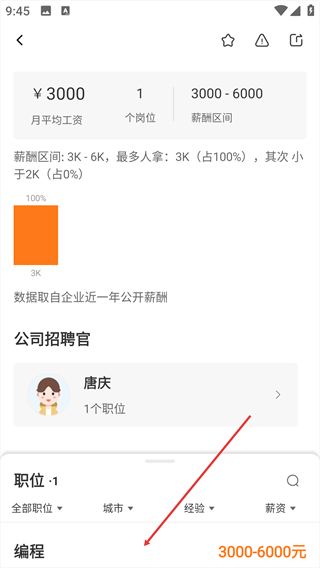 2、选择感兴趣的职位,点击进入该职位的详情页面。