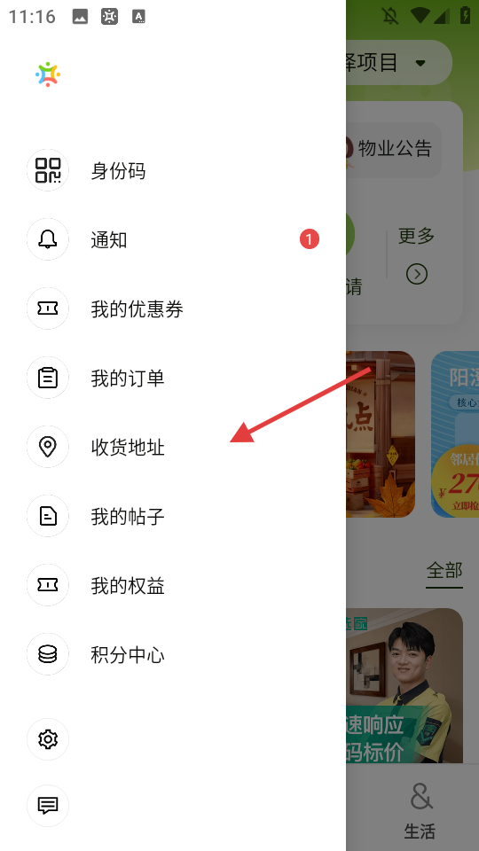1、住这儿是不可以更换小区的,不过可以通过增加新小区和删除原小区来实现,选“我的”选项;