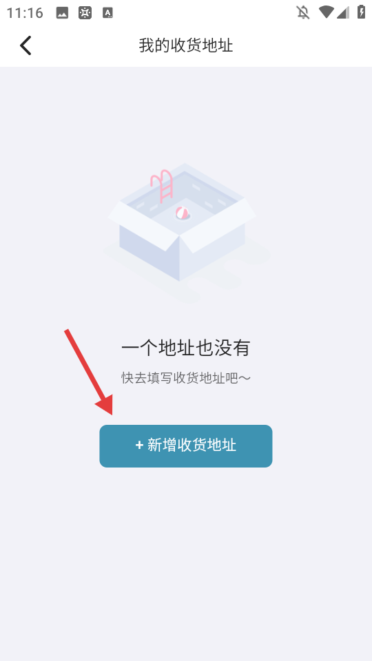 3、进入【我的收货地址】页面,点击【新增收货地址】。