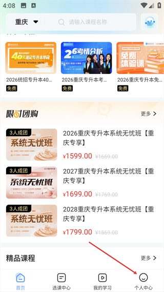 1、进入APP的【首页】,点击底部的【个人中心】按钮。