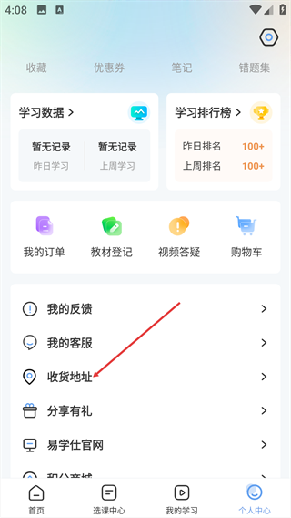 2、在【个人中心】页面,找到并点击【收货地址】选项。