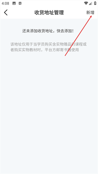 3、点击右上角的【新增】按钮,进入添加收货地址的操作页面。