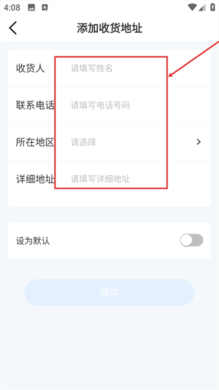 4、依次填写收货人、联系电话、所在地区、详细地址等信息,完成收货地址的添加操作。