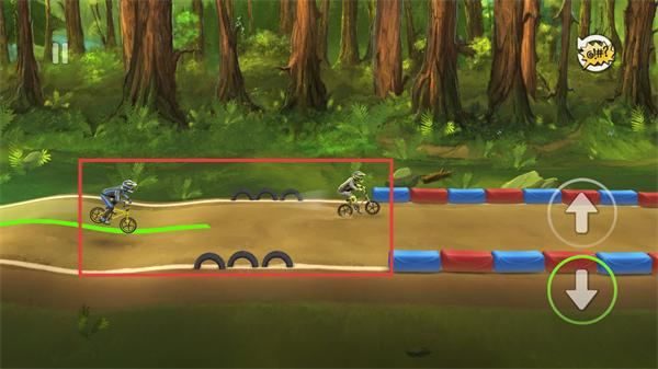 2、进入关卡后,按右侧【向下键】操控小轮车,跟随对手沿路线行驶,留意道路障碍。