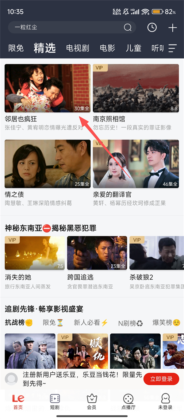 2、在精选板块中,找到视频如【邻居也疯狂】,点击进入其播放页面呀。