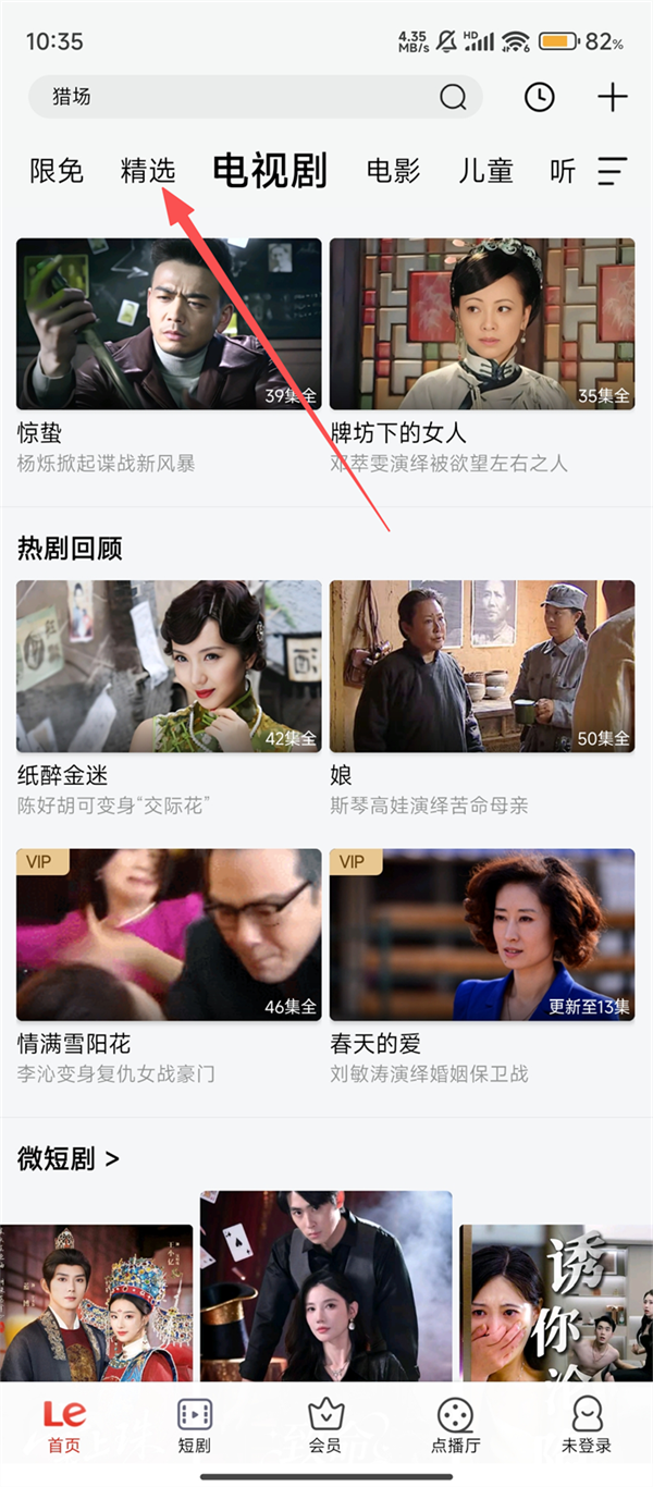1、打开乐视视频App,点击【精选】标签,进入精选内容板块,方便我们找到想下载的视频呢。