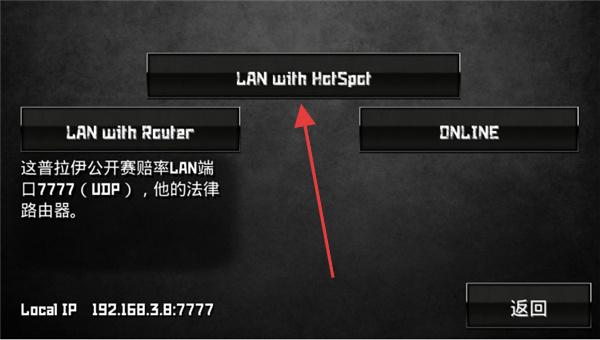 1、选择【LAN with HotSpot】模式,进入局域网游戏设置,利用热点进行连接,准备与好友进行局域网游戏。