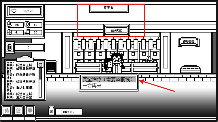 3、每场激烈战斗结束后,状态将受到影响,此时前往“圣手堂”进行恢复是最快速且稳定的方式,为下一次挑战做好万全准备。
