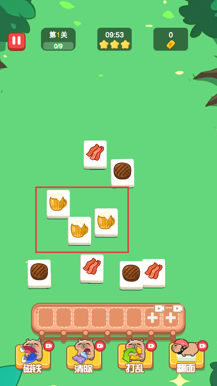 2、玩家在游戏里,列如将方框内相同的物品进行消灭即可通关。