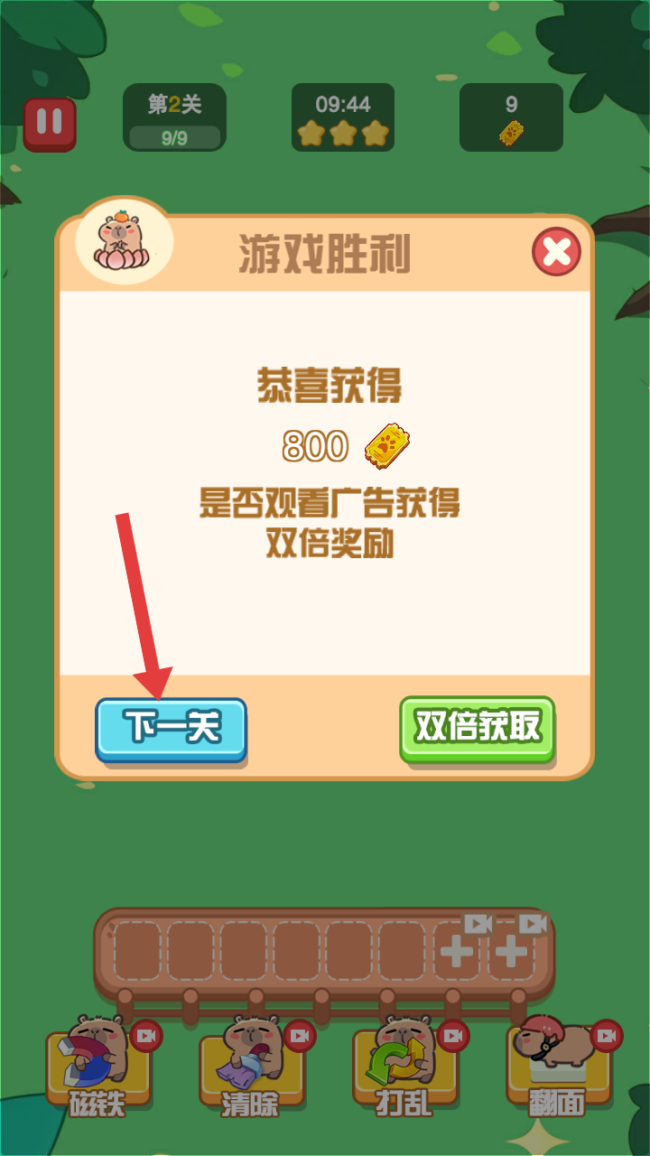 3、玩家通关后,点击【下一关】即可进入下一关卡。