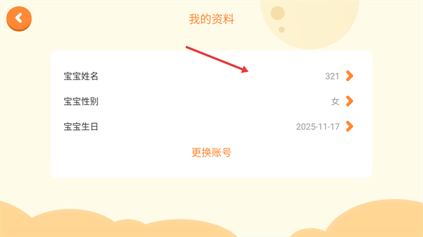 2、点击【宝宝姓名】旁的箭头,进入姓名修改界面。