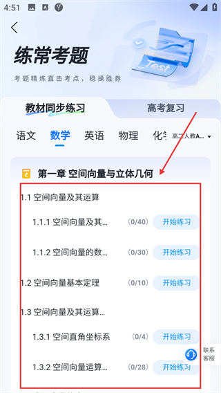 2、进入【练常考题】页面后,选择目标章节,点击【开始练习】按钮。