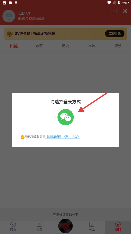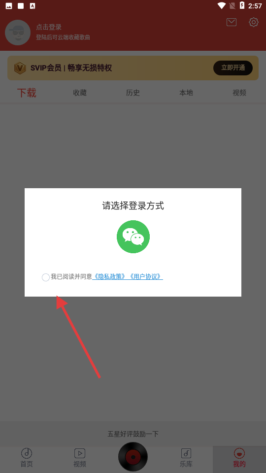 4、勾选协议后,点击【微信】登录图标,进行登录操作。