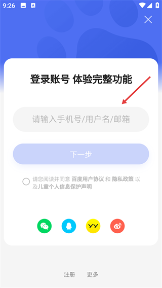 3、在登录界面输入手机号后,点击“下一步”按钮。