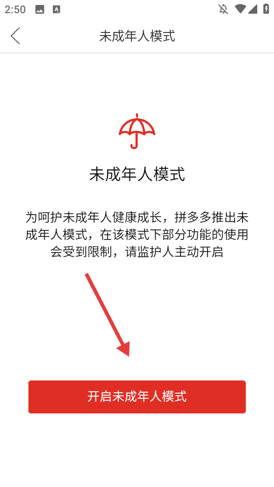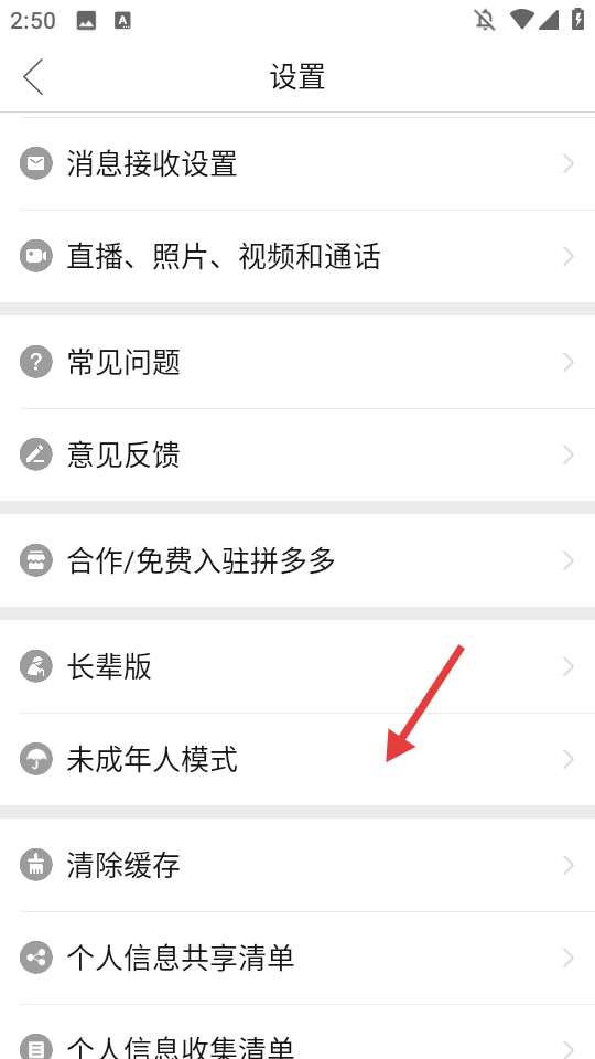 2、在【设置】页面,找到【未成年人模式】选项并点击,进入模式设置界面。