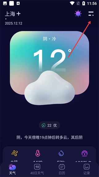 1、在天气主界面,点击右上角菜单按钮,进入设置页面。