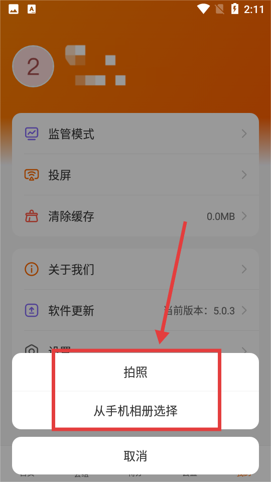 3、在菜单中选择【从手机相册选择】(或【拍照】),进入手机相册界面。