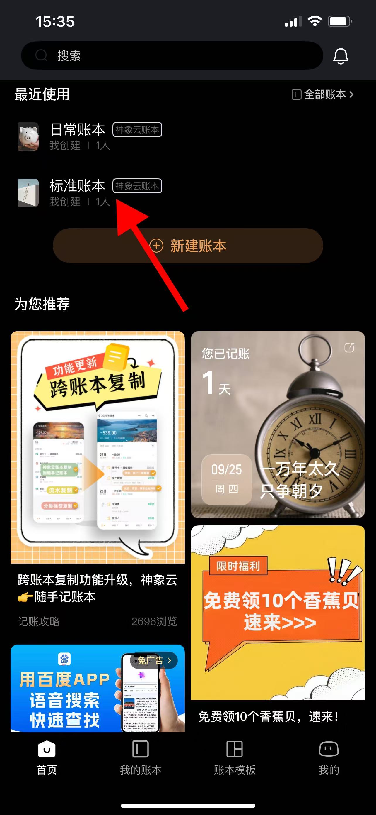 1、在我的账本页面,点击【标准账本】,进入该账本的详情页面。