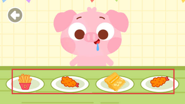 3、根据小猪的喜好,选择对应的食物(如薯条、炸鸡等)满足它重现蛀牙场景。
