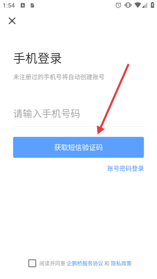 3、在手机登录页面,输入手机号,点击【获取短信验证码】,按提示完成登录操作。