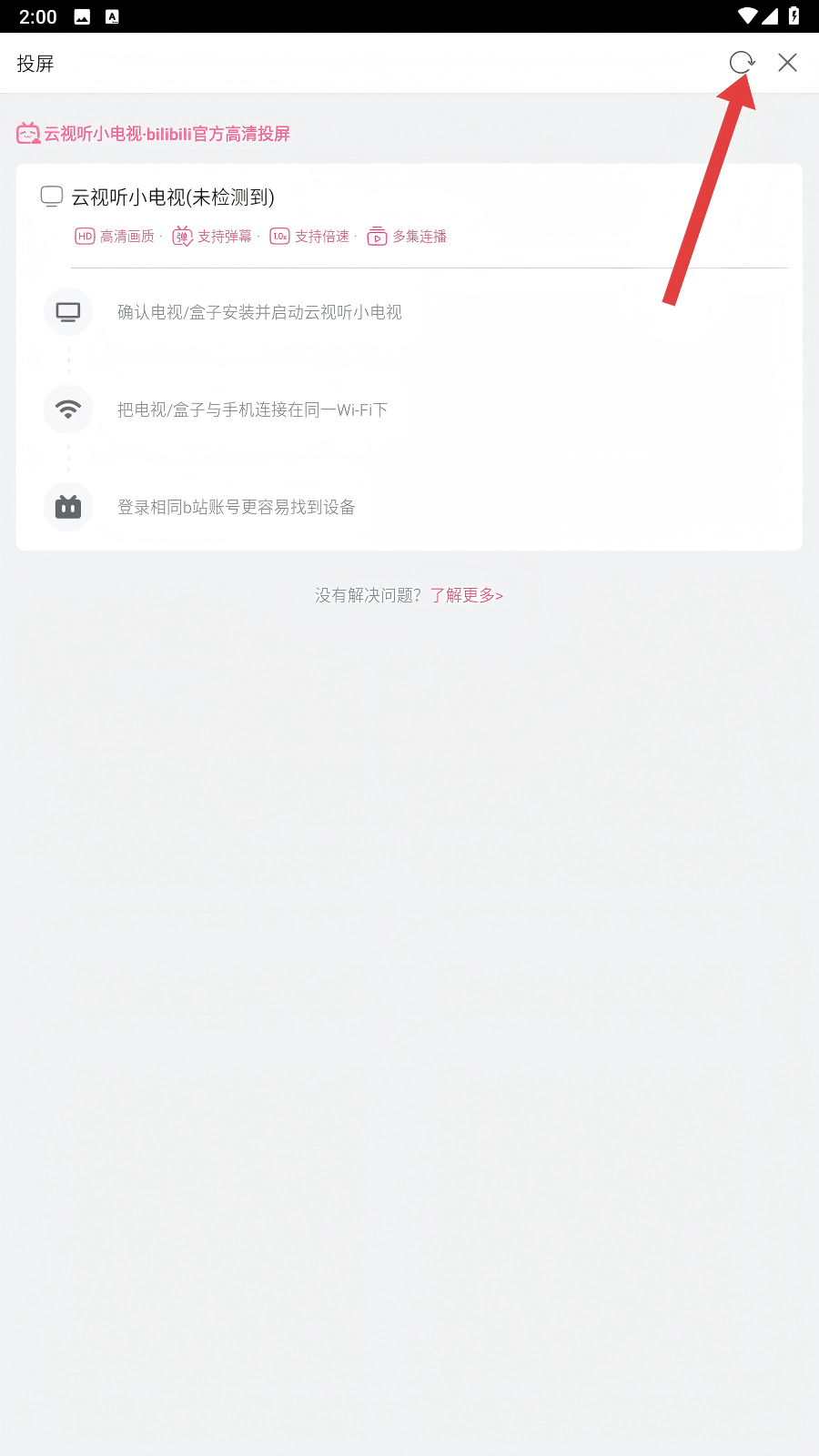 4、在投屏界面,若设备未检测到,可点击刷新按钮,同时确保电视和手机在同一WiFi下,这样就能顺利投屏啦。