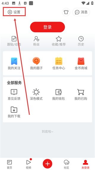 2、进入个人中心页面后,点击左上角【设置】选项。