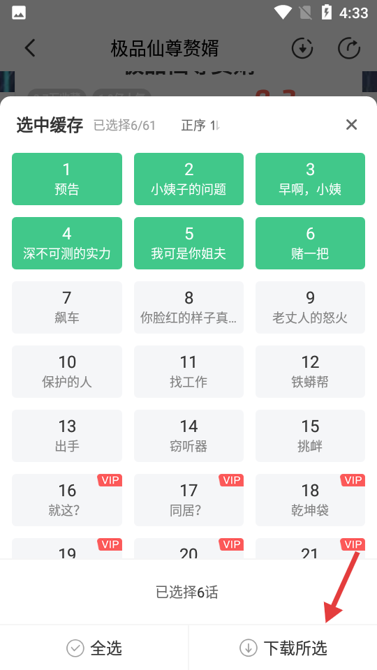 4、选好章节后,点击底部“下载所选”按钮,即可下载选中的漫画章节。