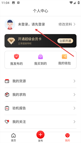 2、在个人中心页面,点击“未登录,请先登录”的提示区域,进入登录界面。
