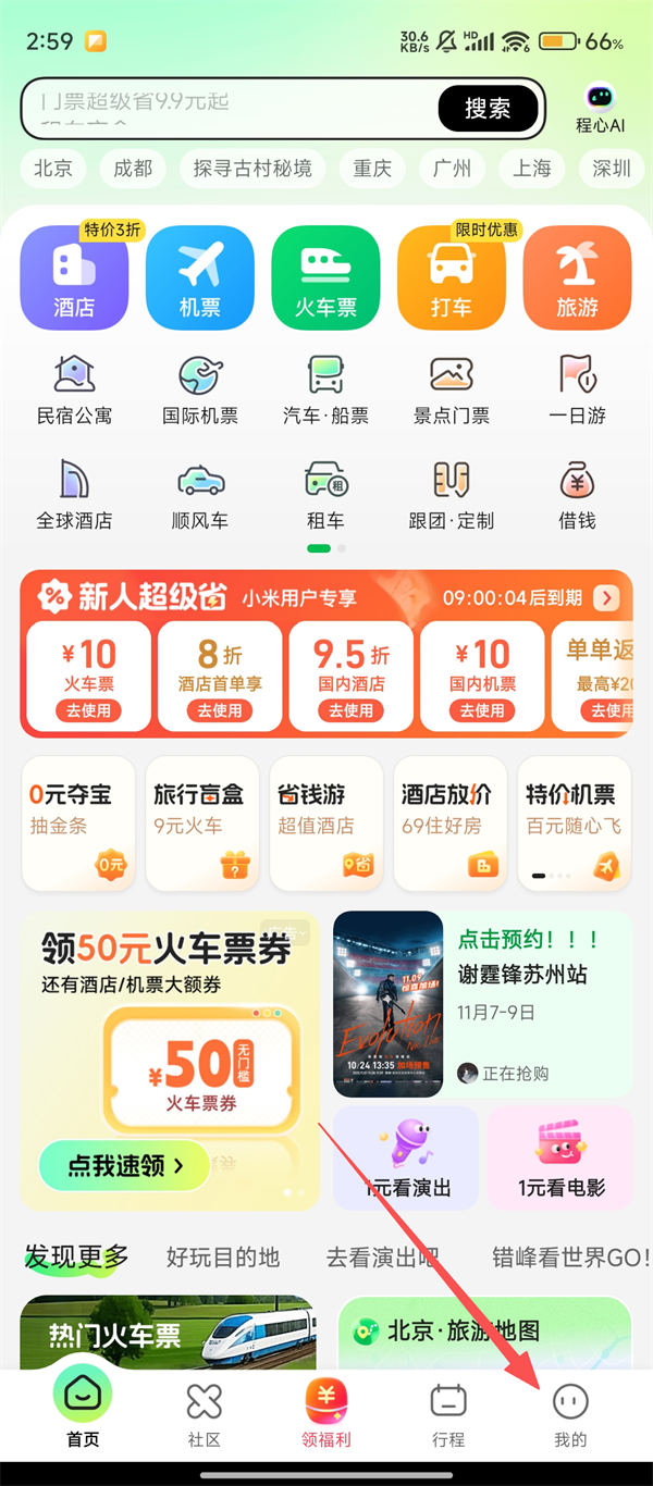 新注册账户可领取专属优惠礼包,包含机票、火车票、酒店、景区门票、汽车票及打车服务等多重红包礼券,活动细则以页面公示为准。