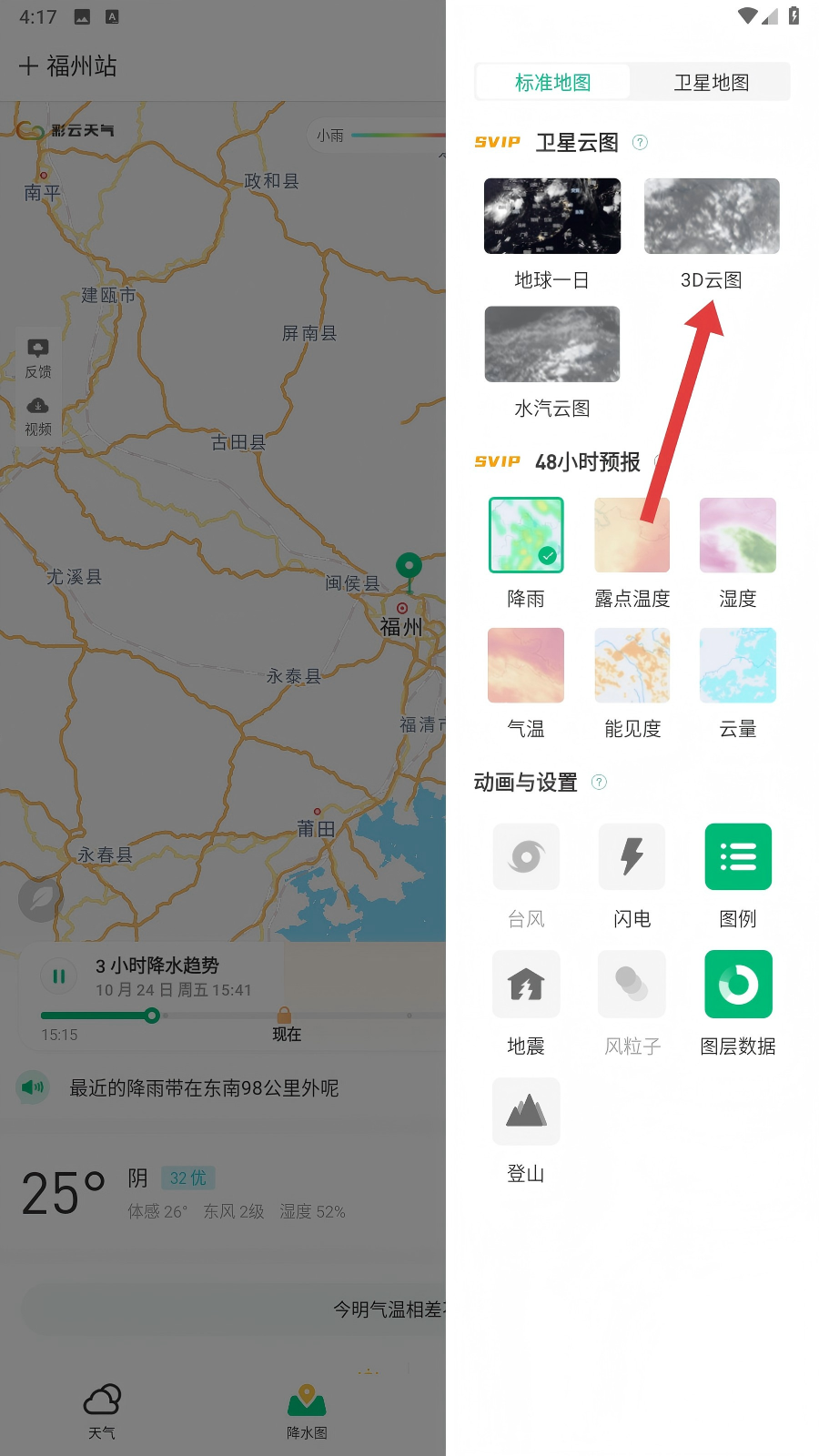 4、进入【3D云图】界面,可查看长达30小时的云图动态趋势,直观掌握全球云层变化,操作路径清晰明了哟。