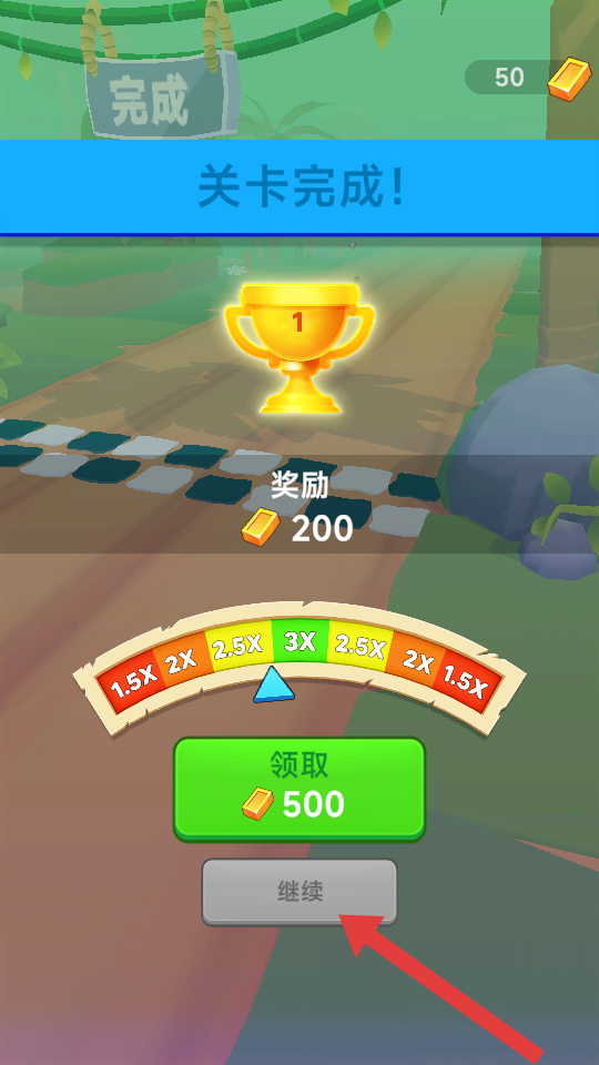 4、成功完成关卡后,出现【关卡完成!】提示,点击【继续】按钮,可领取奖励并挑战后续关卡。
